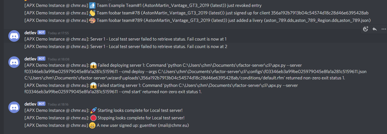 Also, support for Discord web hooks was added to get a status log about what is currently happening on the instance, allowing users to get an uncomplicated view, for example to identify if a participant already submitted the liveries.