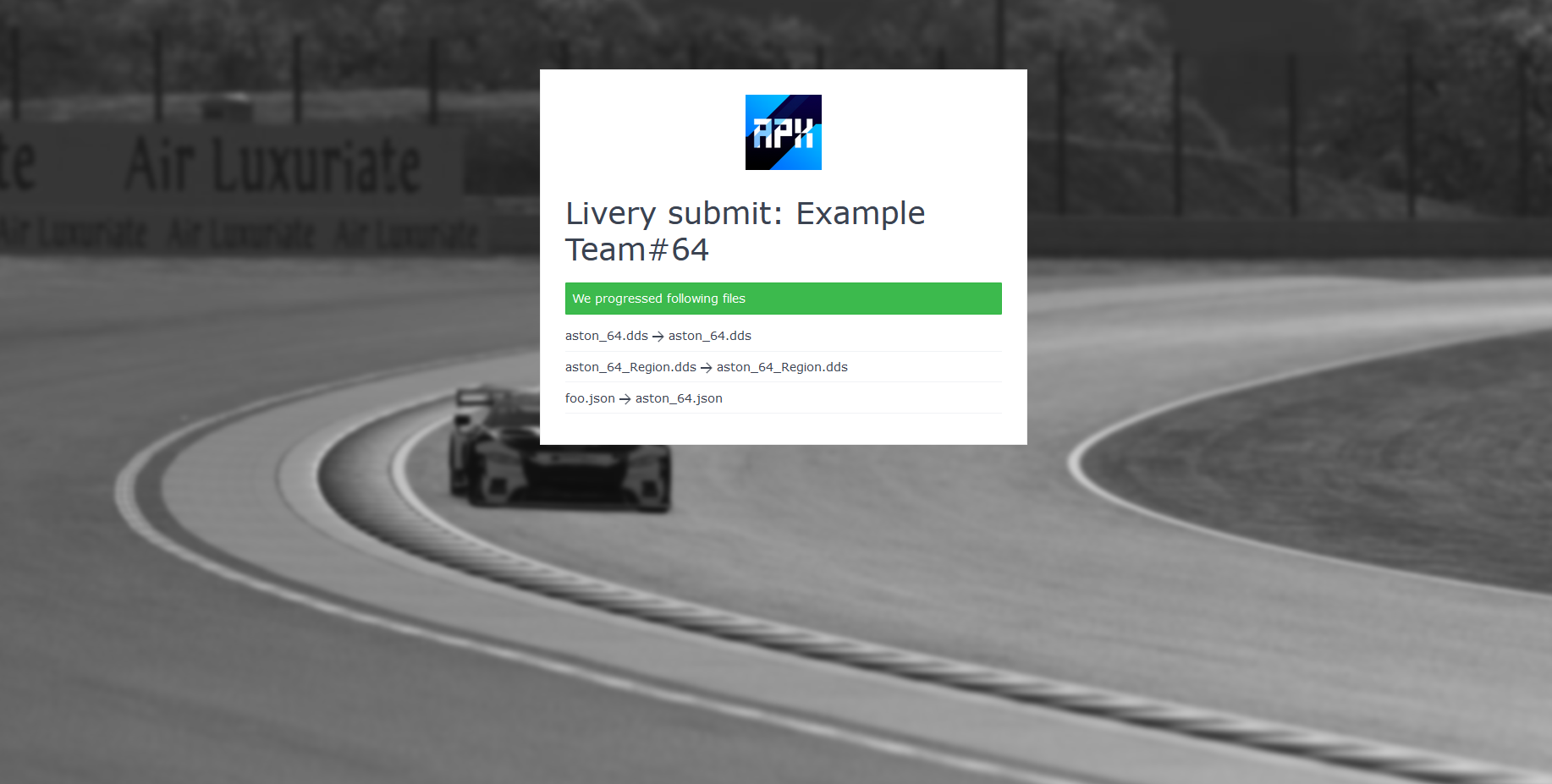 Additional, participants are now able to upload liveries by themselves. During processing, the filenames will be “normalized” to be properly picked up by the game.