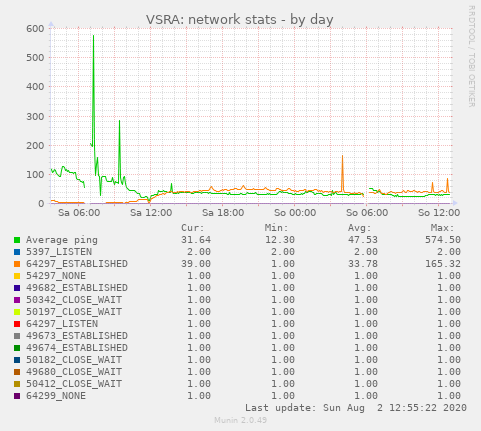 During the hours 5 to 9, the server peaked for serveral times at about 60 connections on Port 64297.