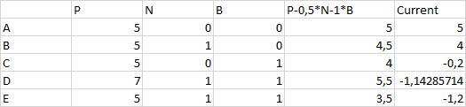 The resulting order would have been D > A > B > C > E. In comparison: the current scoring would sort them A > B > C > D > E.
