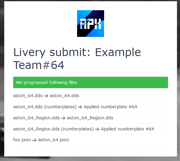 For the participant, nothing changes. The only visible “change” is that the participant will now get an info that numberplates are added to the livery. Files will be updated at upload.