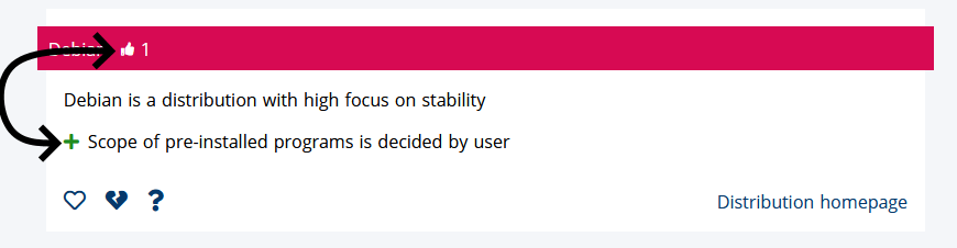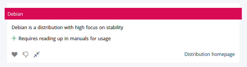 One of the more visible changes is the removal of the FontAwesome toolkit. For a long time (more precise since 6 years), Font Awesome was a constant component for all Distrochooser versions. But in the beta, the icons felt more “clunky” and I felt that a replacement was needed.